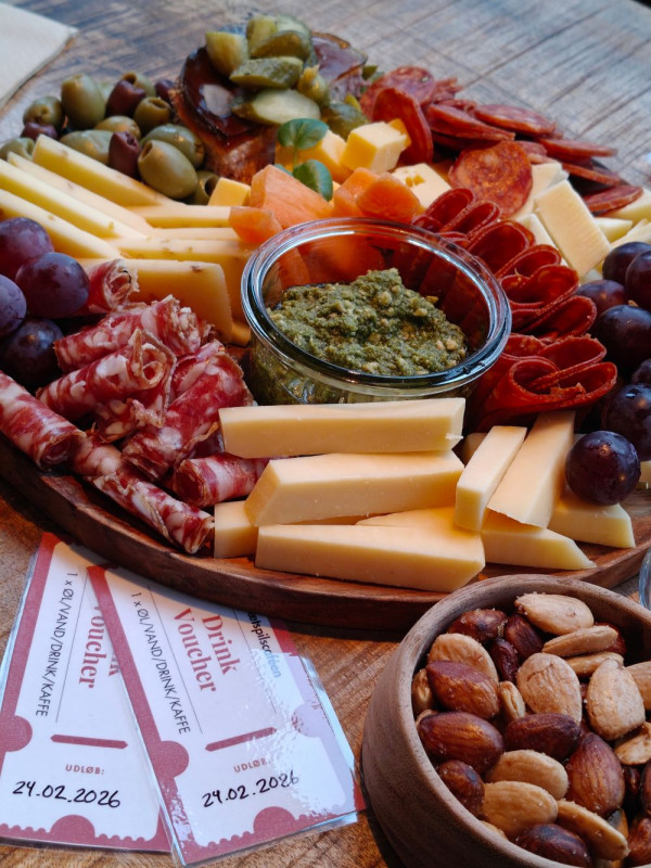 Inkluderer tapas-middag serveret ved bordene under arrangementet, 2 valgfrie drikkevarer pr. person (øl, vand, vin, sodavand og udvalgte cocktails), lette snacks til bordene, underholdning i form af quiz eller musikbanko - inkl. præmier til vinderne.